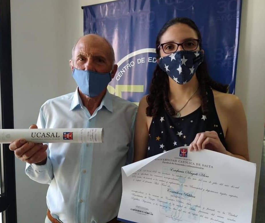 Soy Contadora Pública recibida en Julio del 2020 (si, en plena pandemia me recibi, por eso los barbijos en la foto con mi gran compañero, mi abuelo).